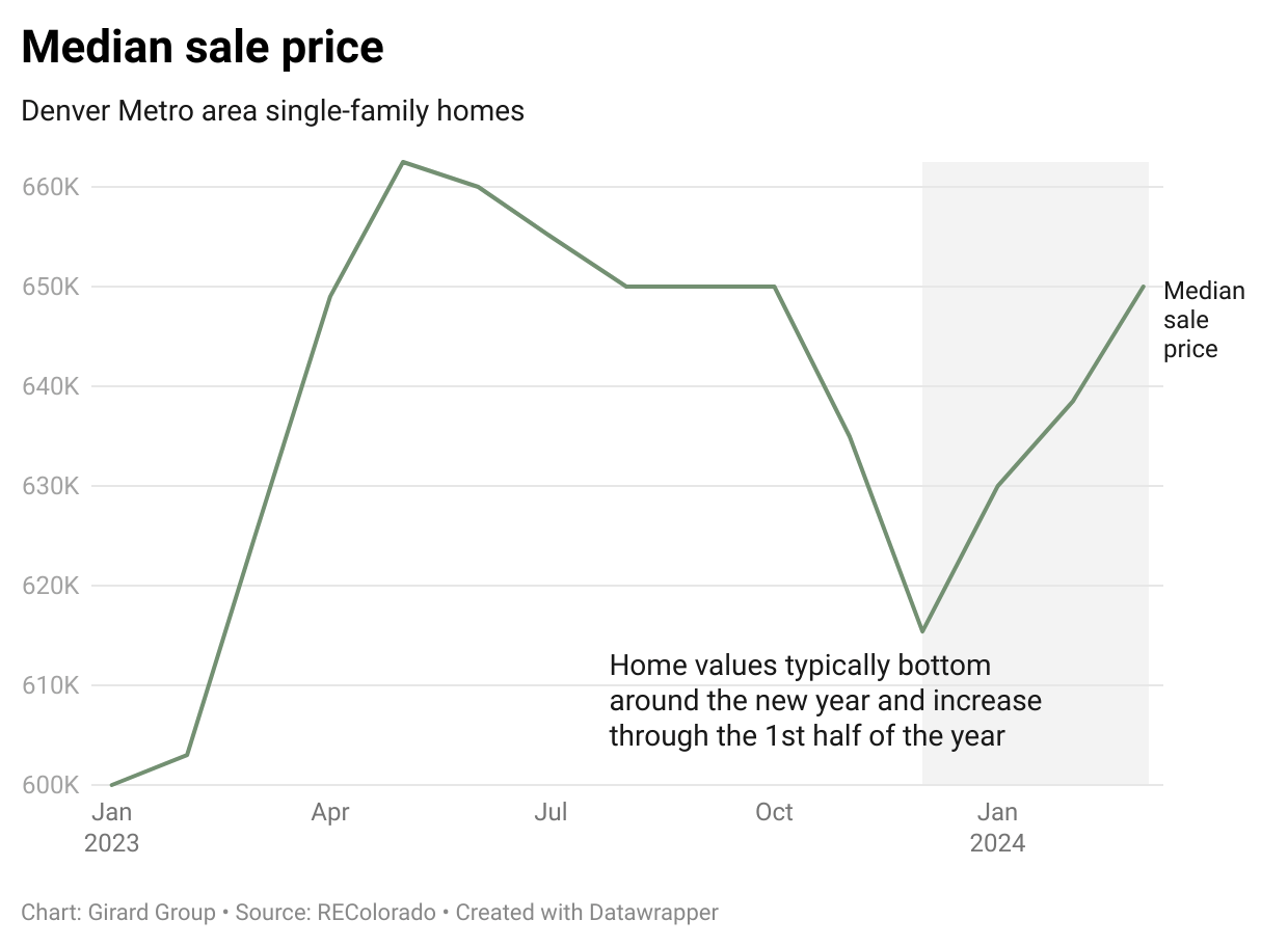 Median home price (excluding condos or townhomes) rose to $650,000 in March, up 4% compared to last year and up slightly MoM